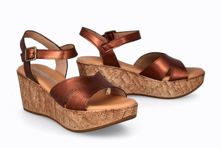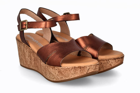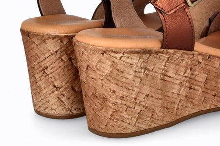 Sandalia de piel color bronce metalizado, 8cm de taco
