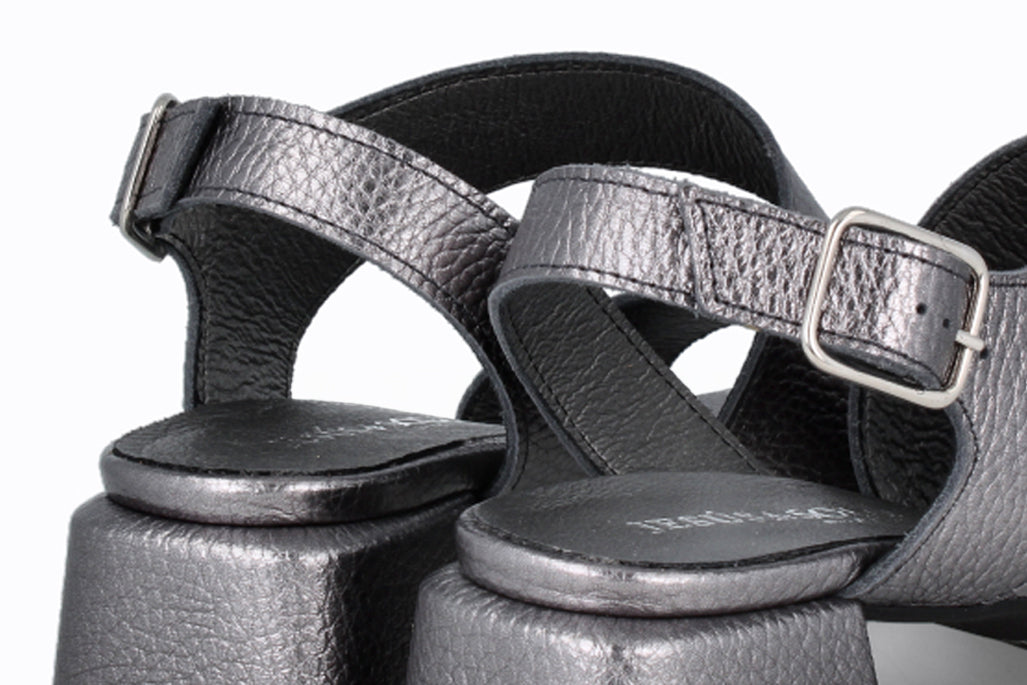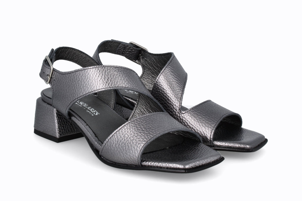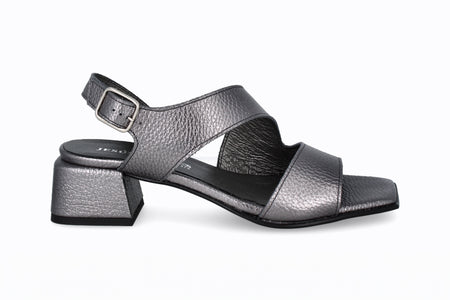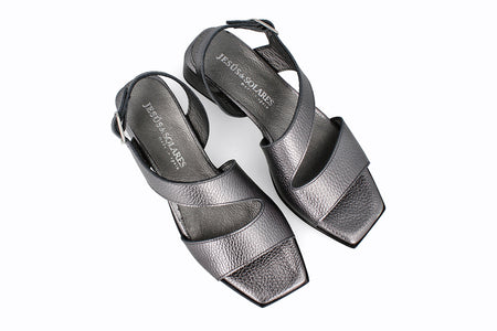 Sandalia de piel color plomo, 4 cm de taco