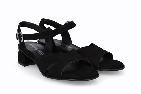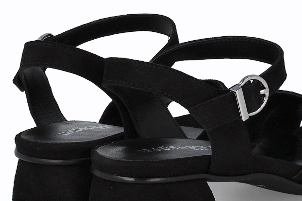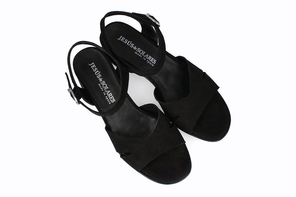 Sandalia de piel tipo gamuza, color negro, 3 cm de taco
