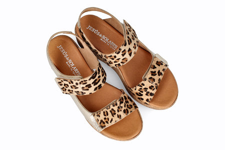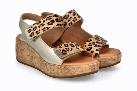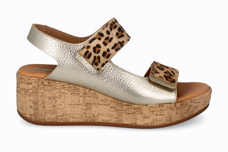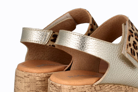 Sandalia de piel color platino con animal print, 5 cm de taco