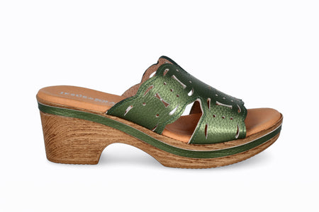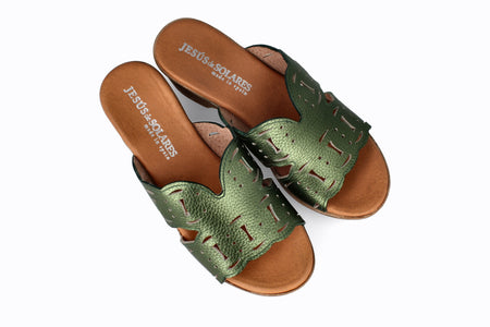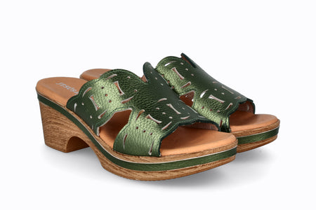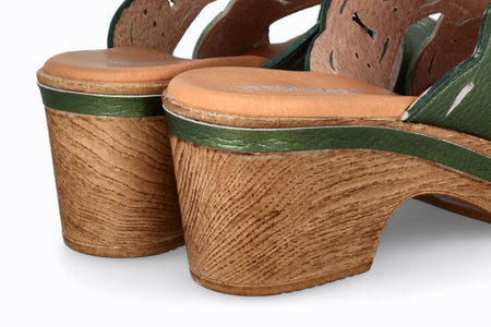 Sandalia de piel color verde metalizado, 5 cm de taco