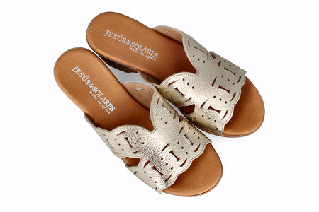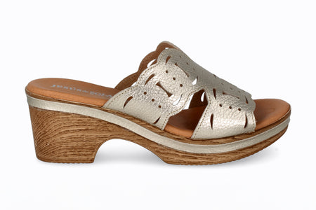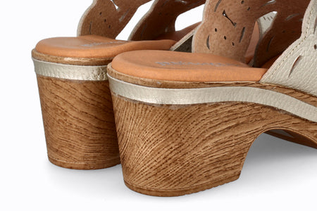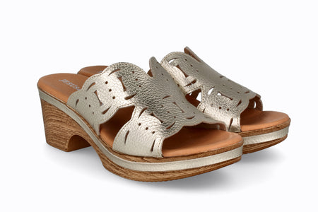Sandalia de piel color platino, 5 cm de taco