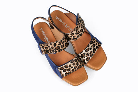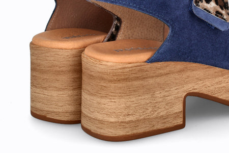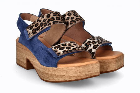 Sandalia de piel color lila con animal print, 6 cm de taco