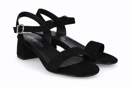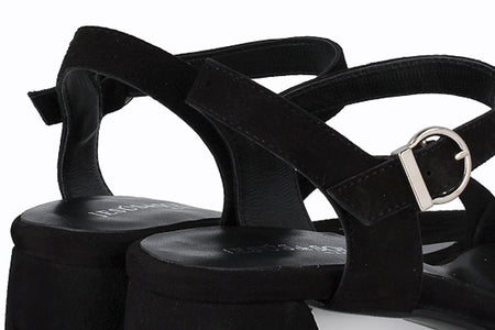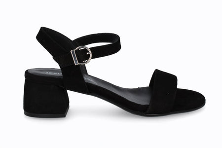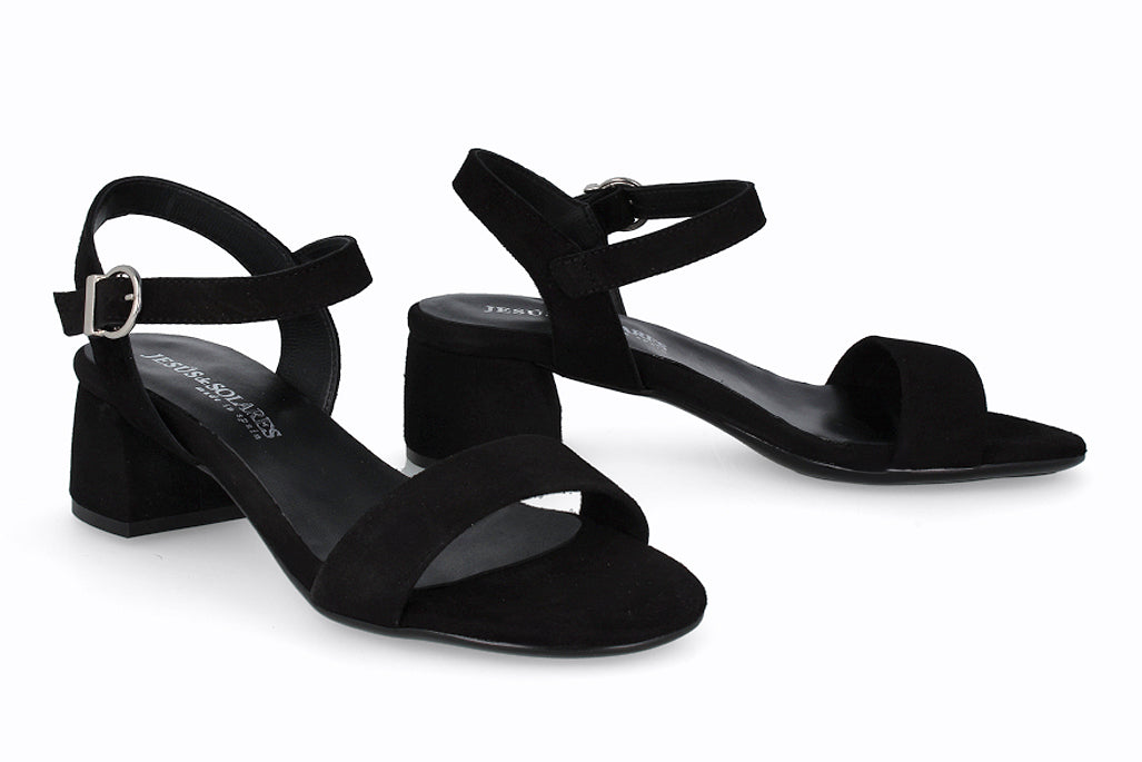 Sandalia de piel tipo gamuza color negro, 5 cm de taco