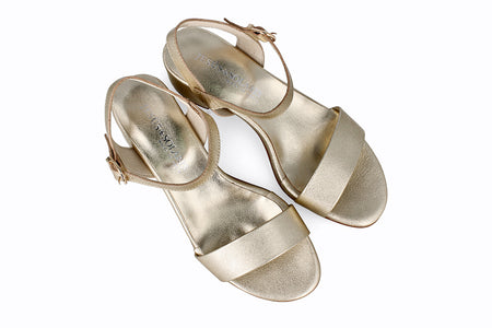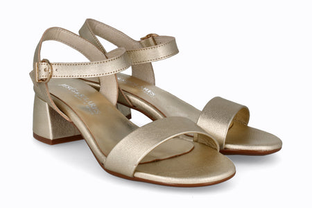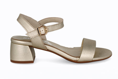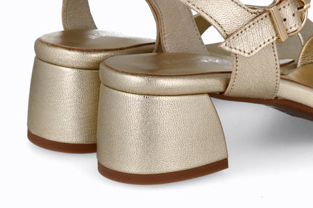 Sandalia de piel color platino, 5 cm de taco