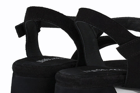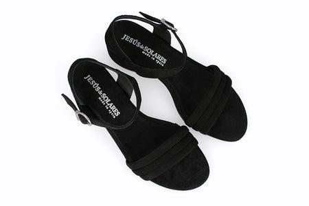 Sandalia de piel tipo gamuza color negro, 5 cm de taco