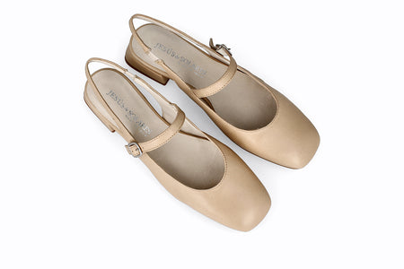 Zapato de piel color beige, 3 cm de taco