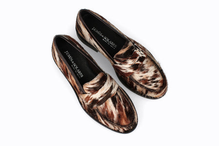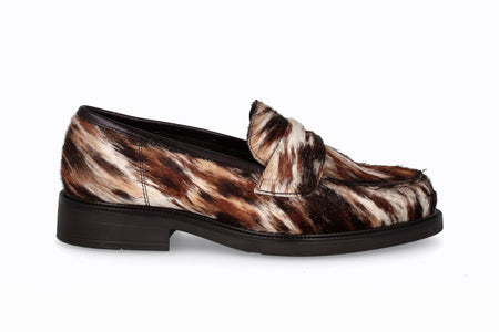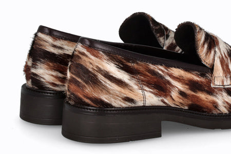 Mocasín de cuero animal print con suela de goma.