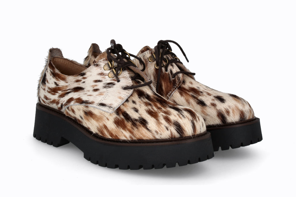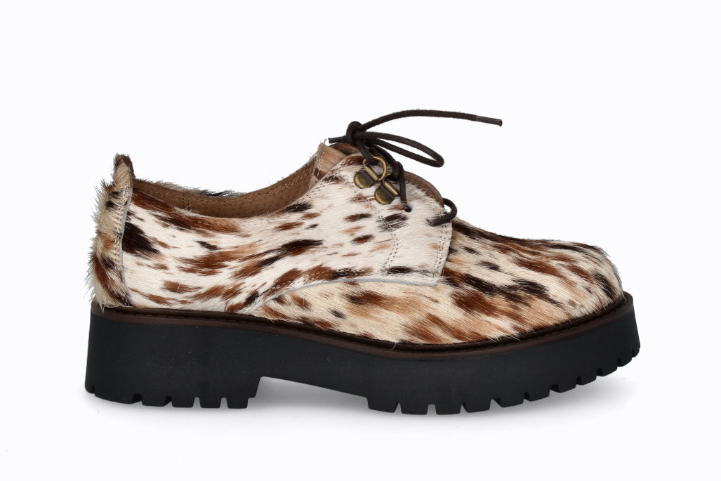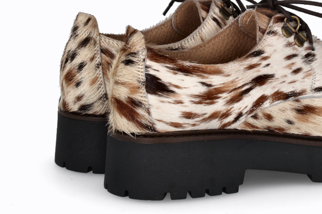 Zapato de cuero con cordones, animal print con suela de goma 3cm.