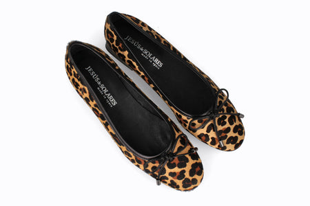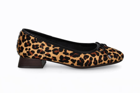 Balerina de cuero, animal print con suela y taco de 3cm.