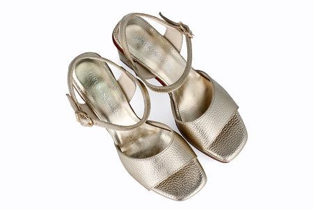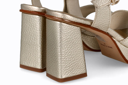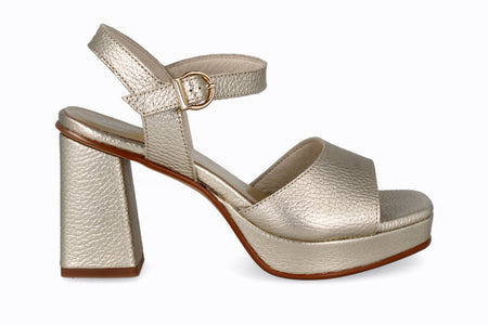 Sandalia de piel, color champagne con 10 cm de taco.