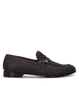 Mocasín de cuero italiano con diseño petate hecho a mano.
